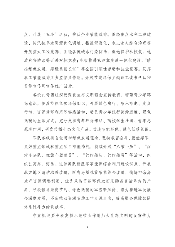 中直管理局,国务院有关部门,中央军委后勤保障部,全国妇联,有关社会团体,各省、自治区、直辖市及计划单列市、副省级省会城市、新疆生产建设兵团发展改革委、生态环境厅(局)、教育厅(教委、教育局)、科技厅(科委、科技局)、工业和信息化主管部门、住房和城乡建设厅(建委、建设交通委、建设局)、交通运输厅(局、委)、农业农村(农牧)厅(局、委)、商务主管部门、国资委、广电局、机关事务管理部门、总工会、团委: